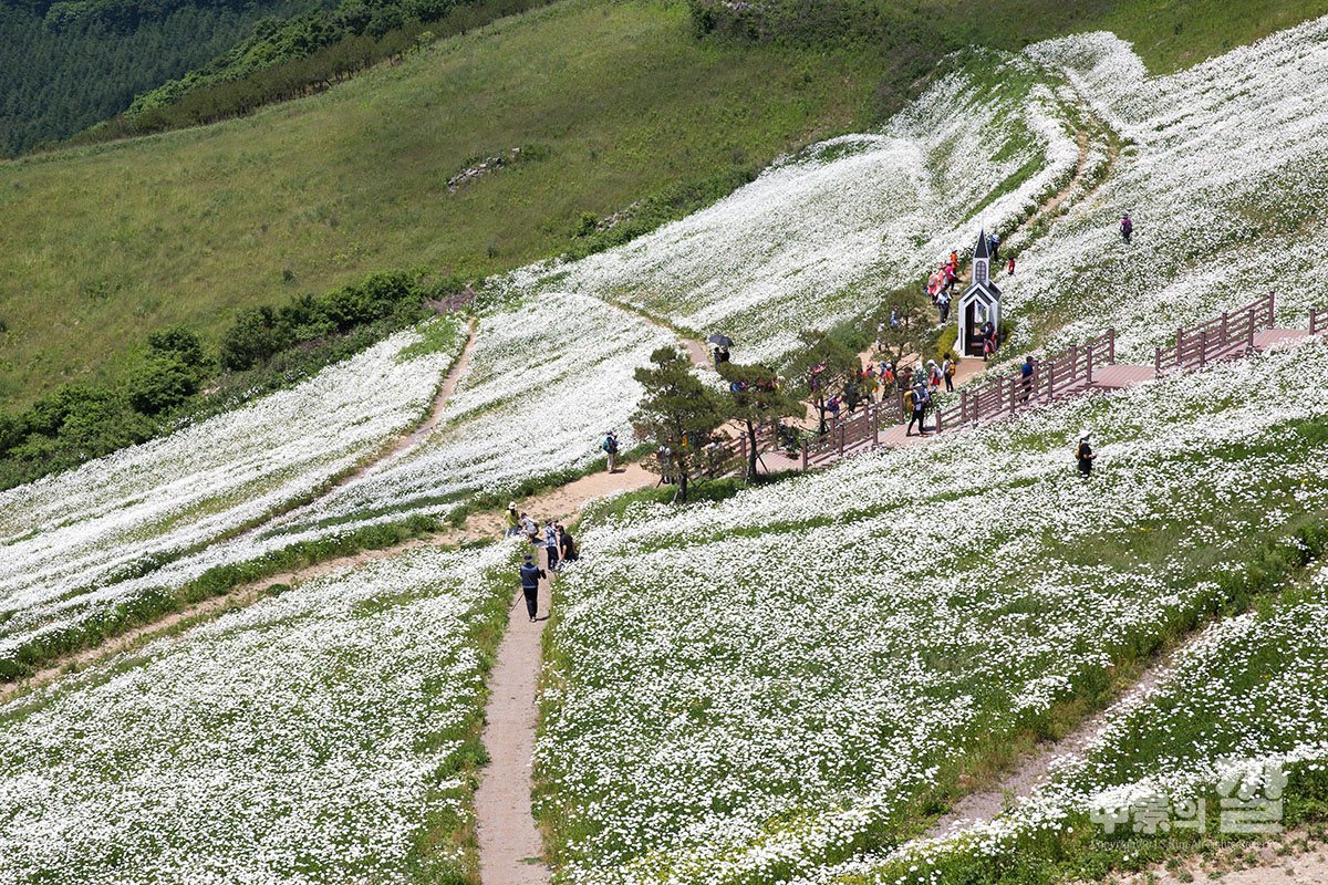 샤스타데이지 꽃이 피어 환상적인 "육백마지기"