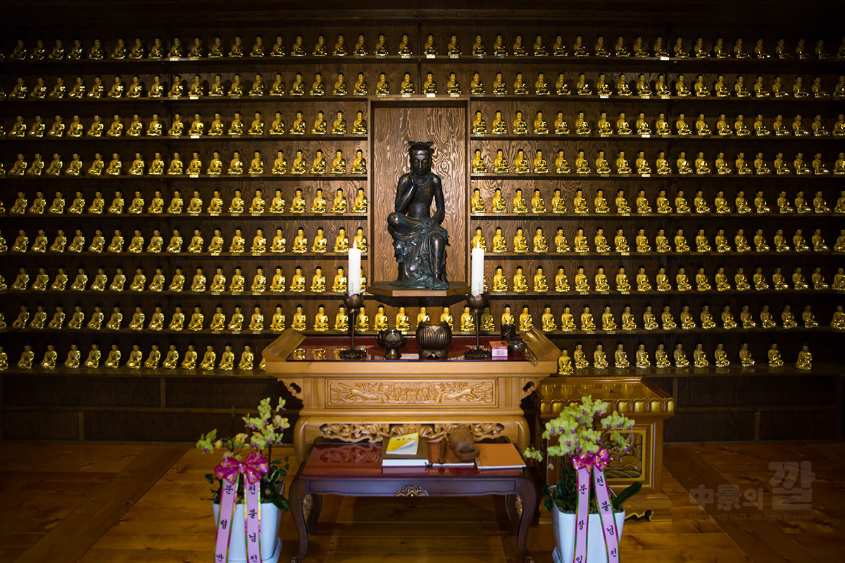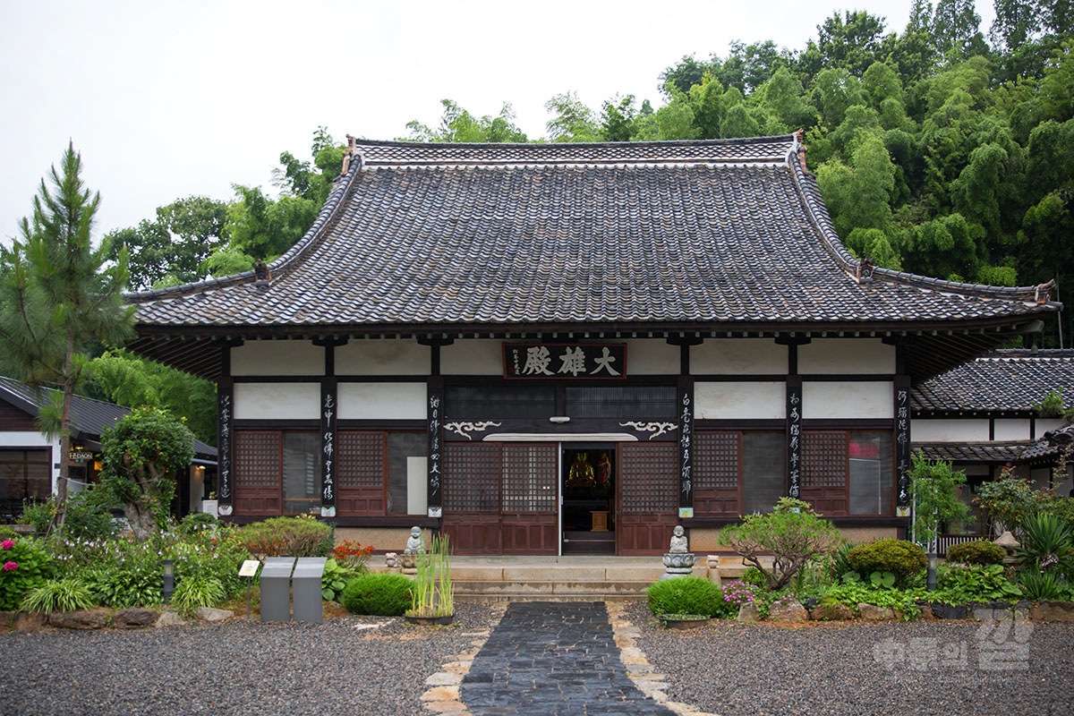 대웅전은 정면 5칸 측면 5칸 정방형 단층팔자지붕 홀 처마 형식의 에도시대(江戶時代) 건축양식으로