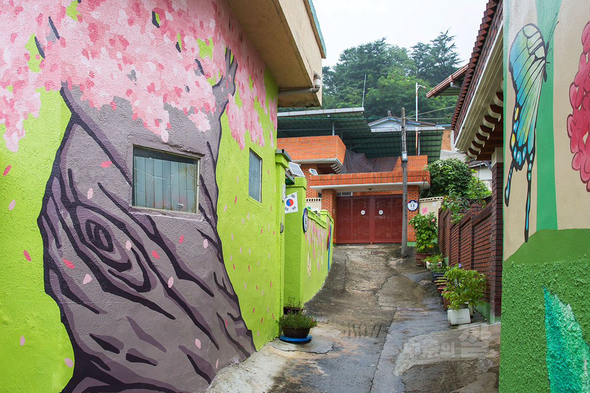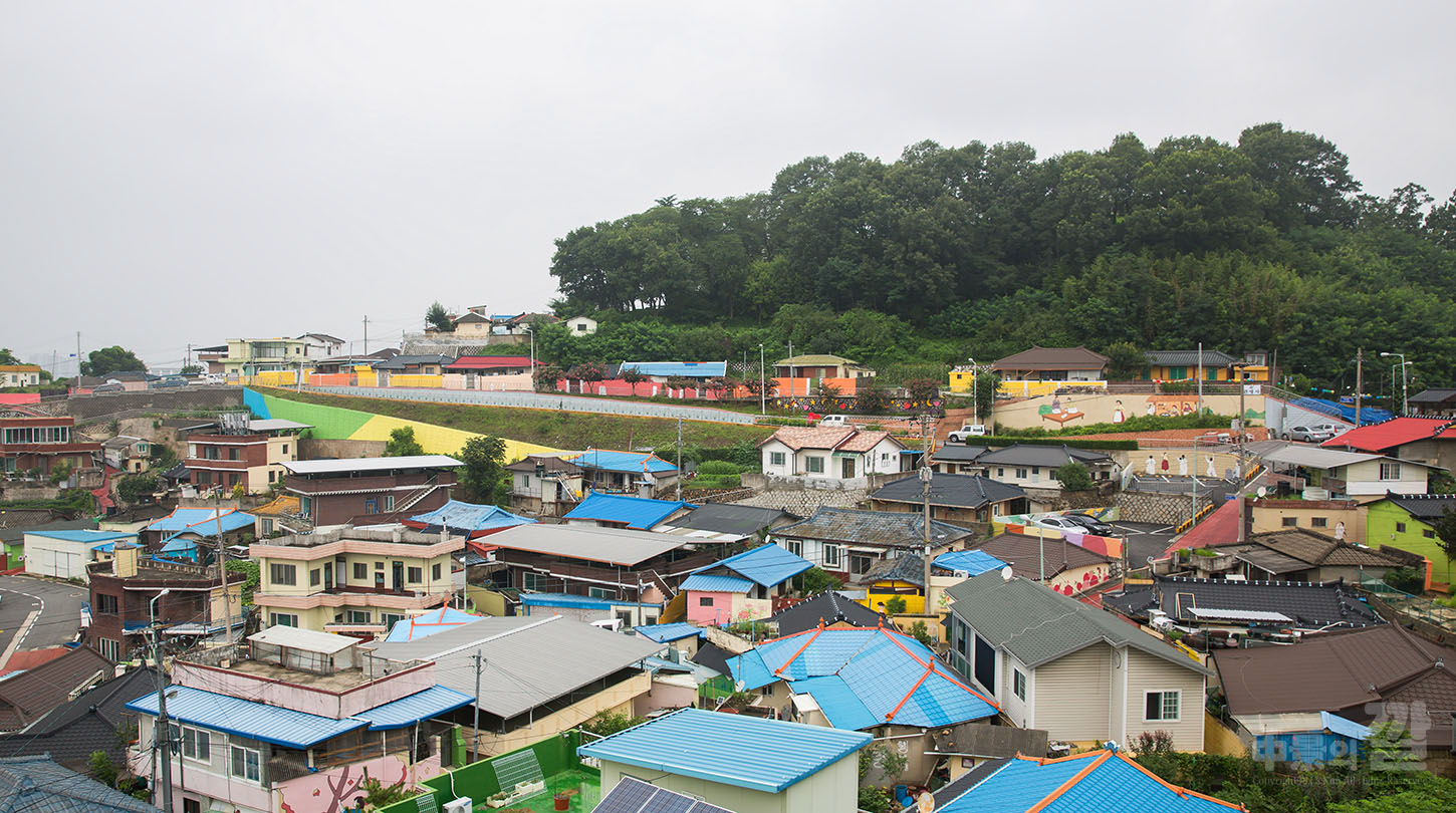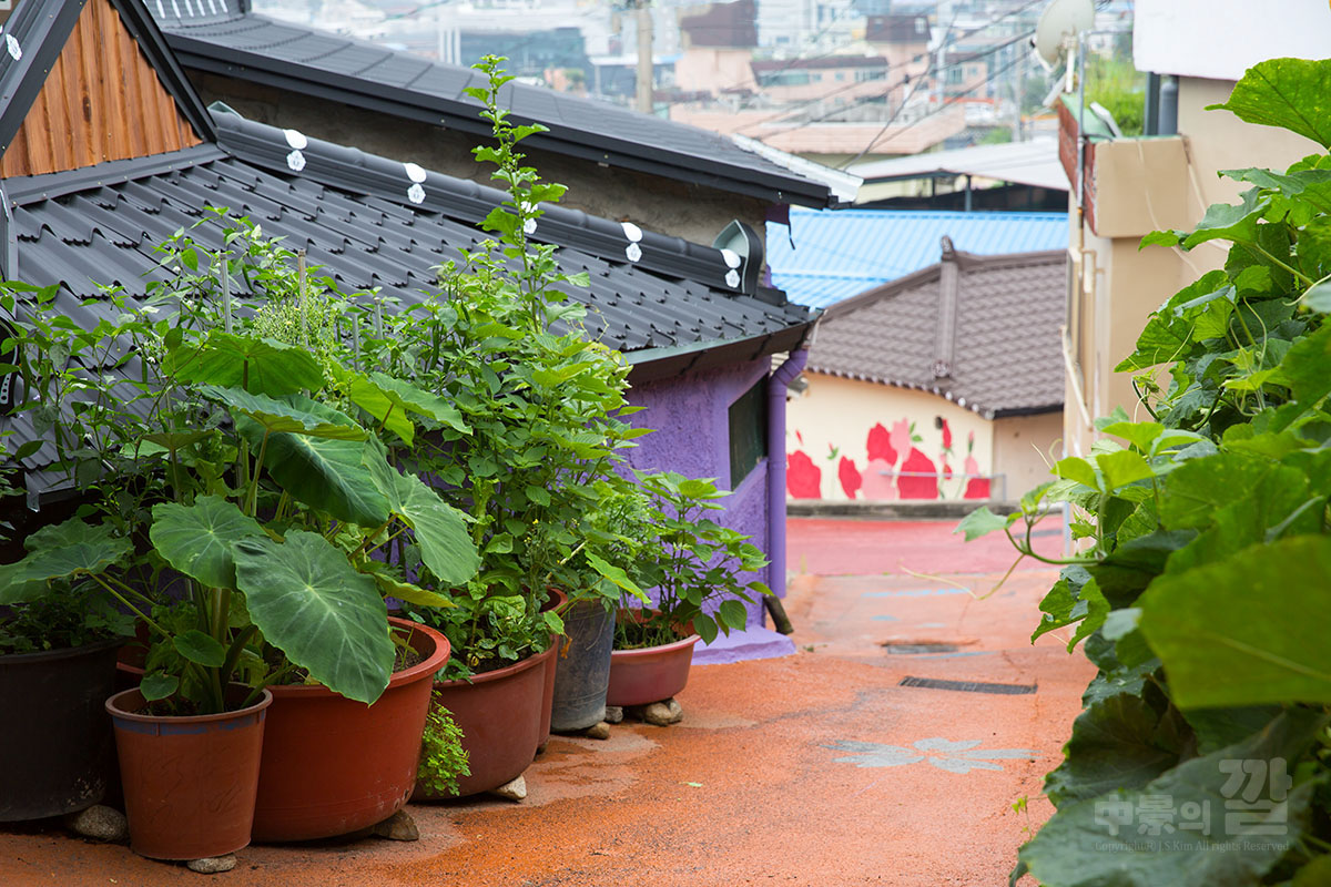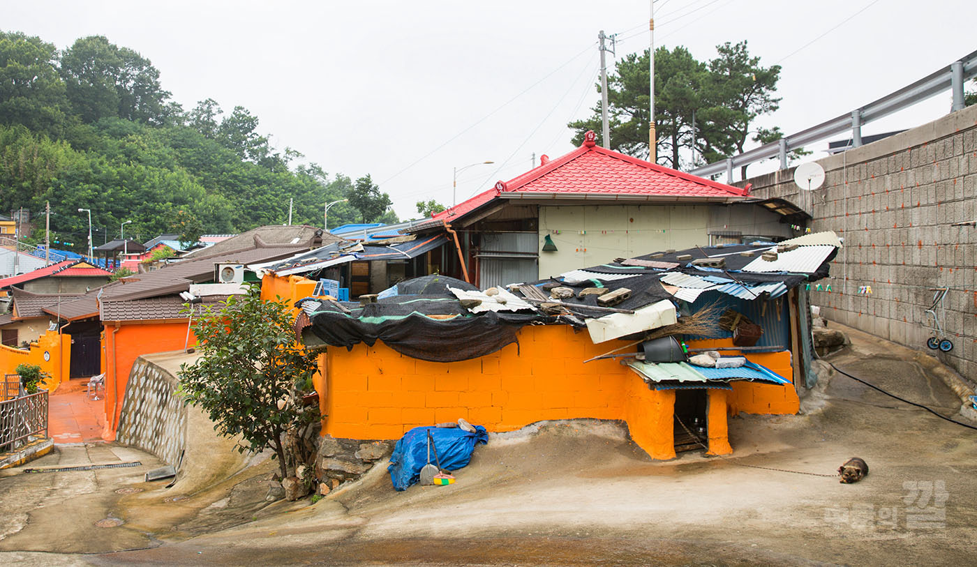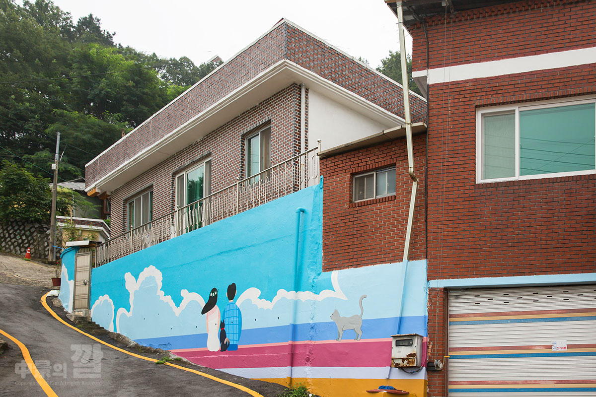 긴 장마로 인해 비가 내리는 가운데 촬영된 '자산동 벽화마을'은
