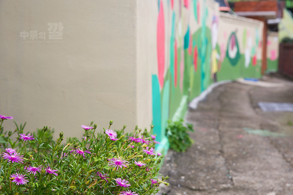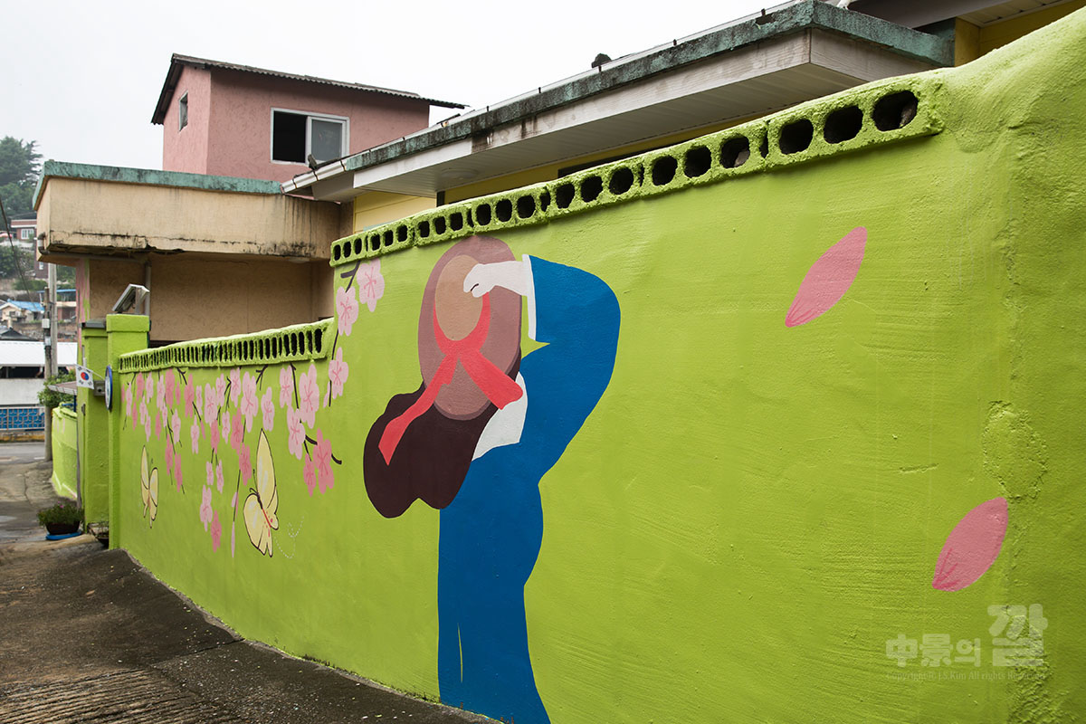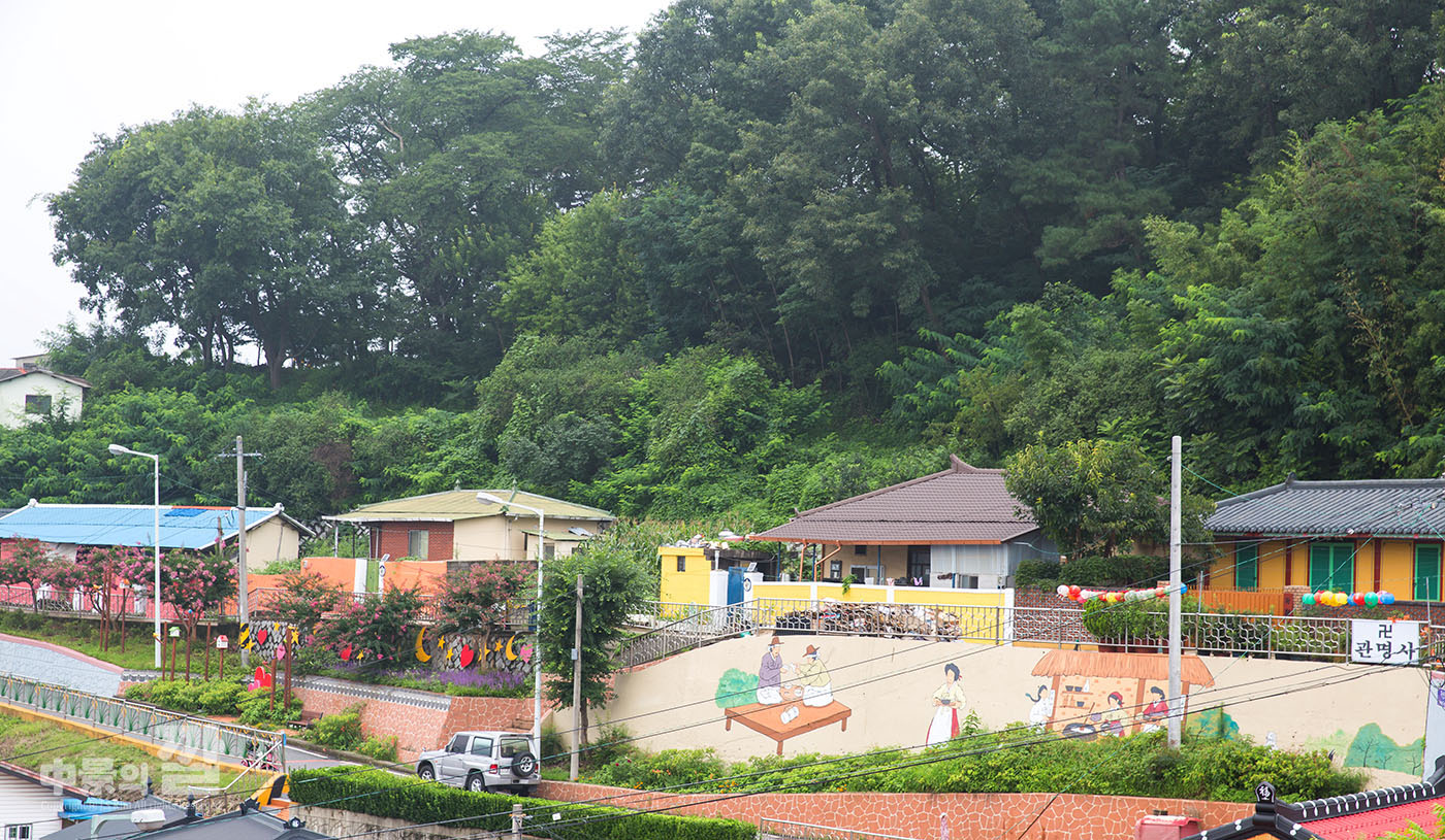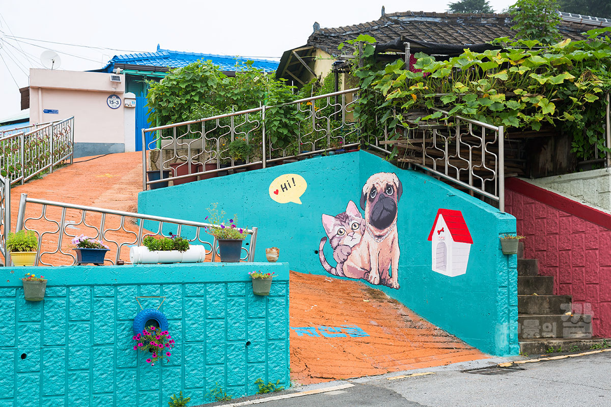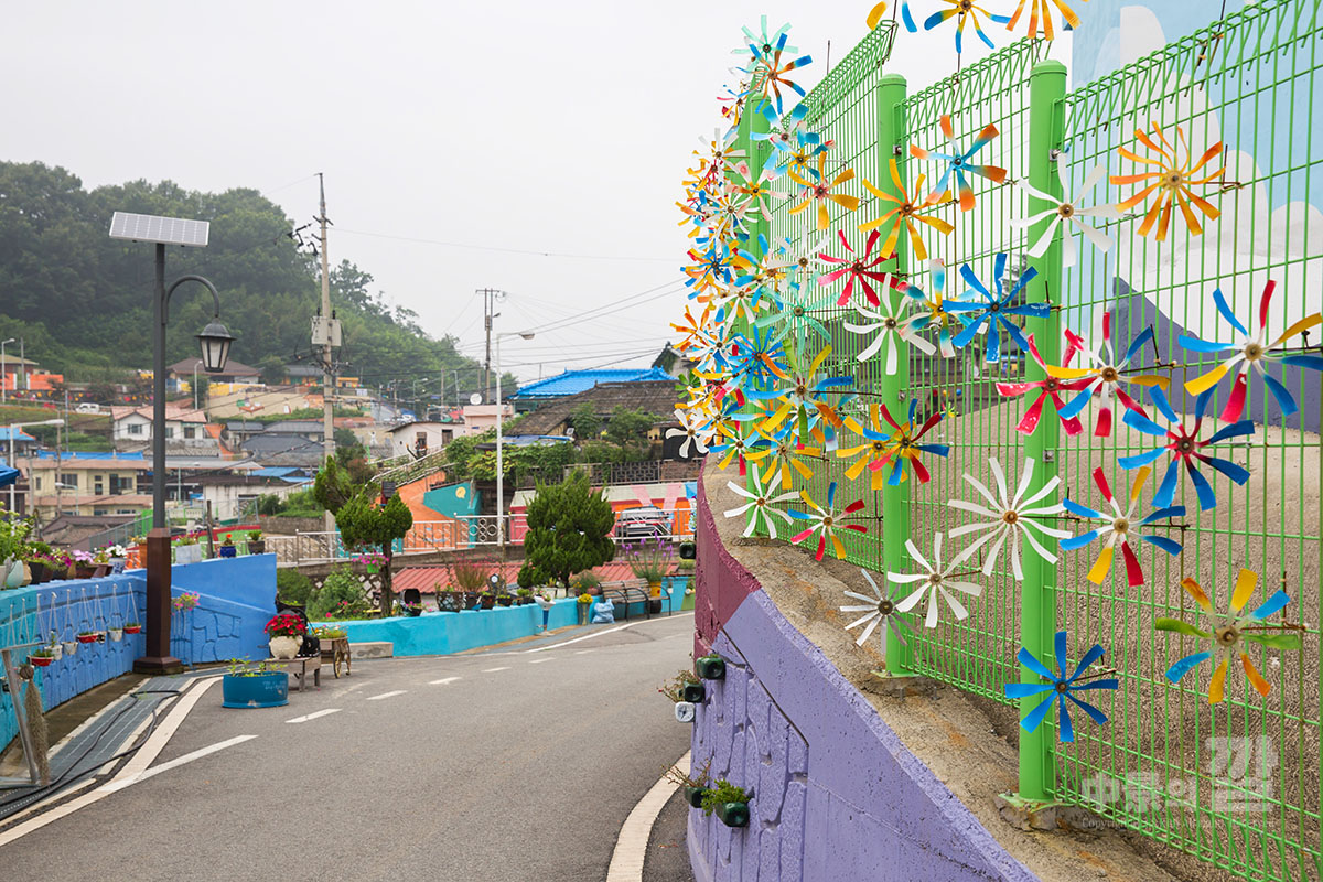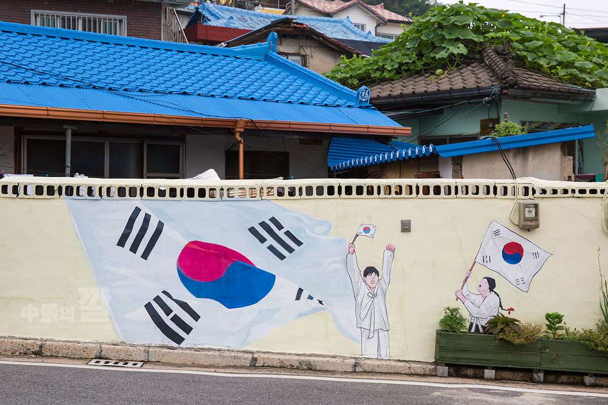 긴 장마로 인해 비가 내리는 가운데 촬영된 '자산동 벽화마을'은