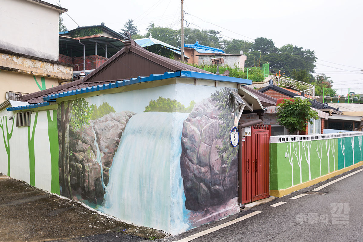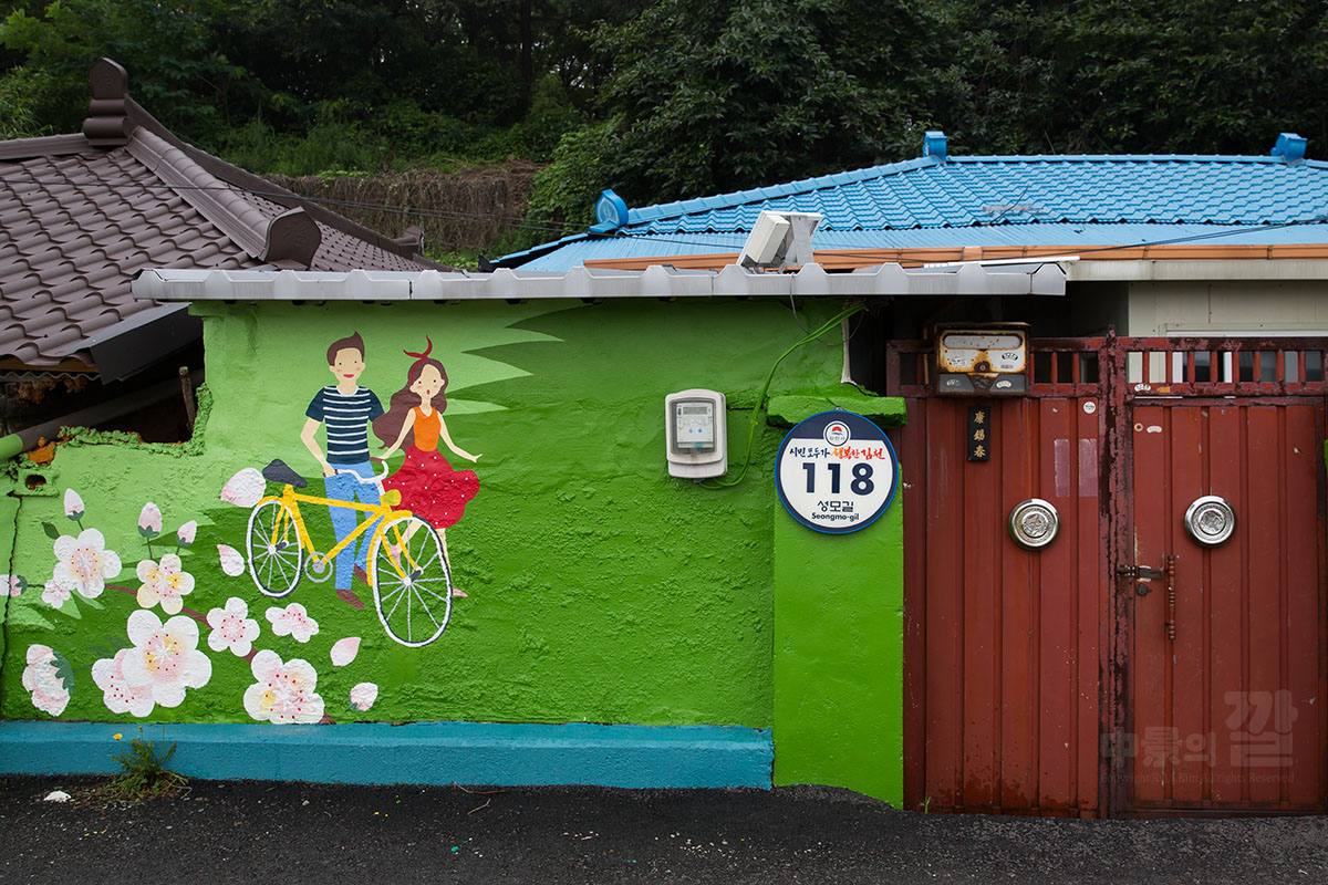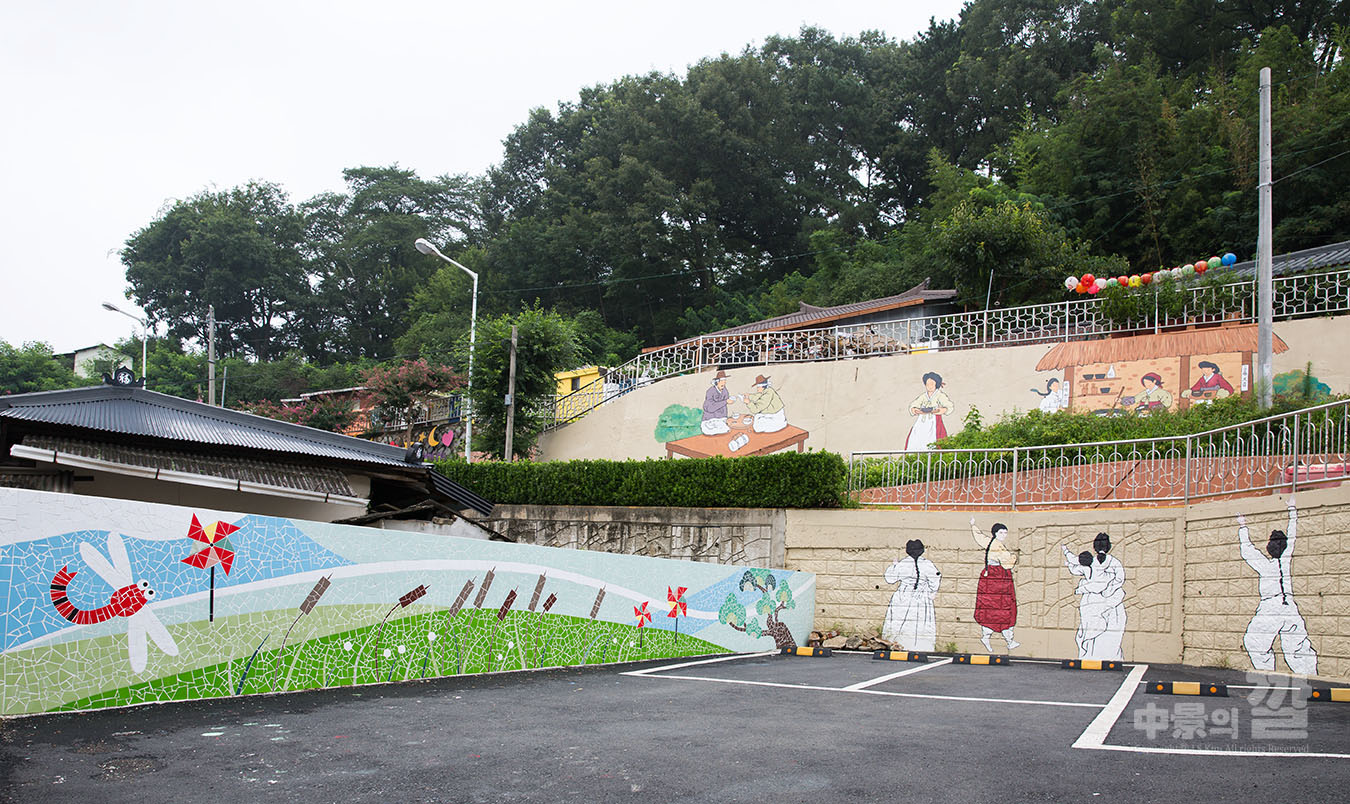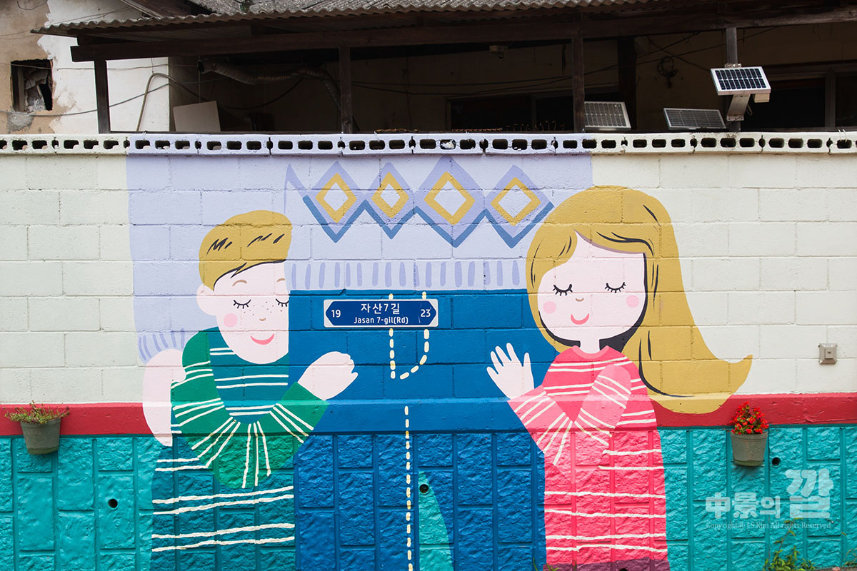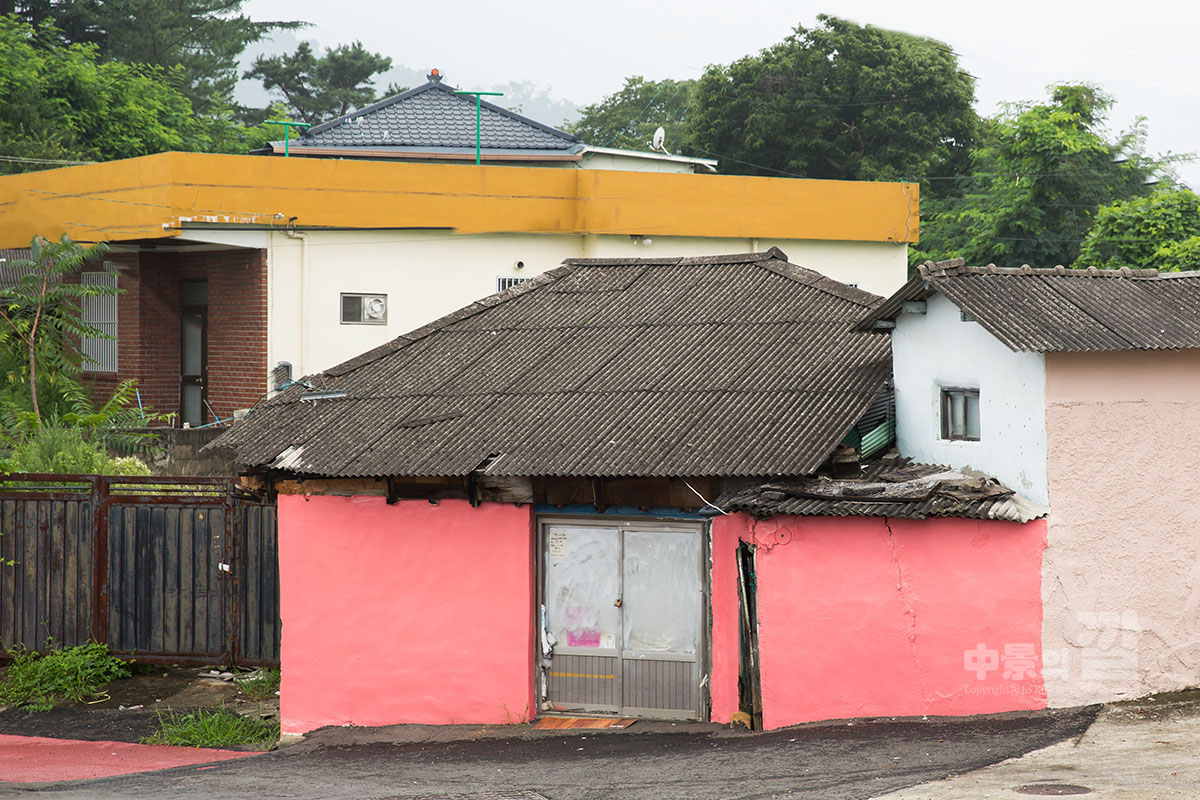 긴 장마로 인해 비가 내리는 가운데 촬영된 '자산동 벽화마을'은