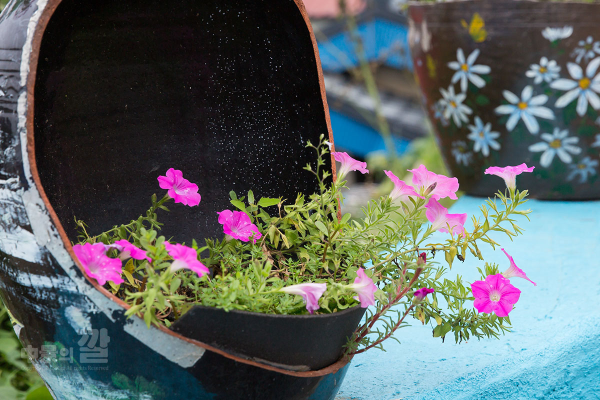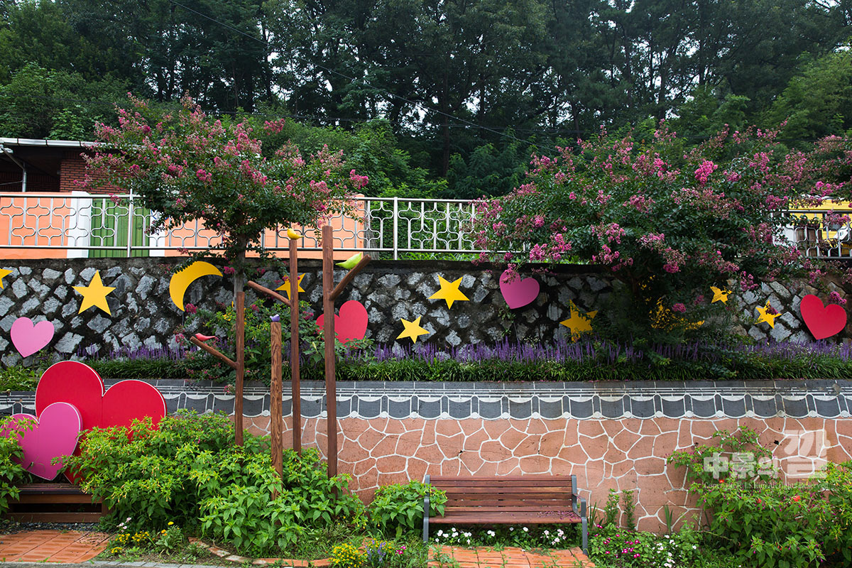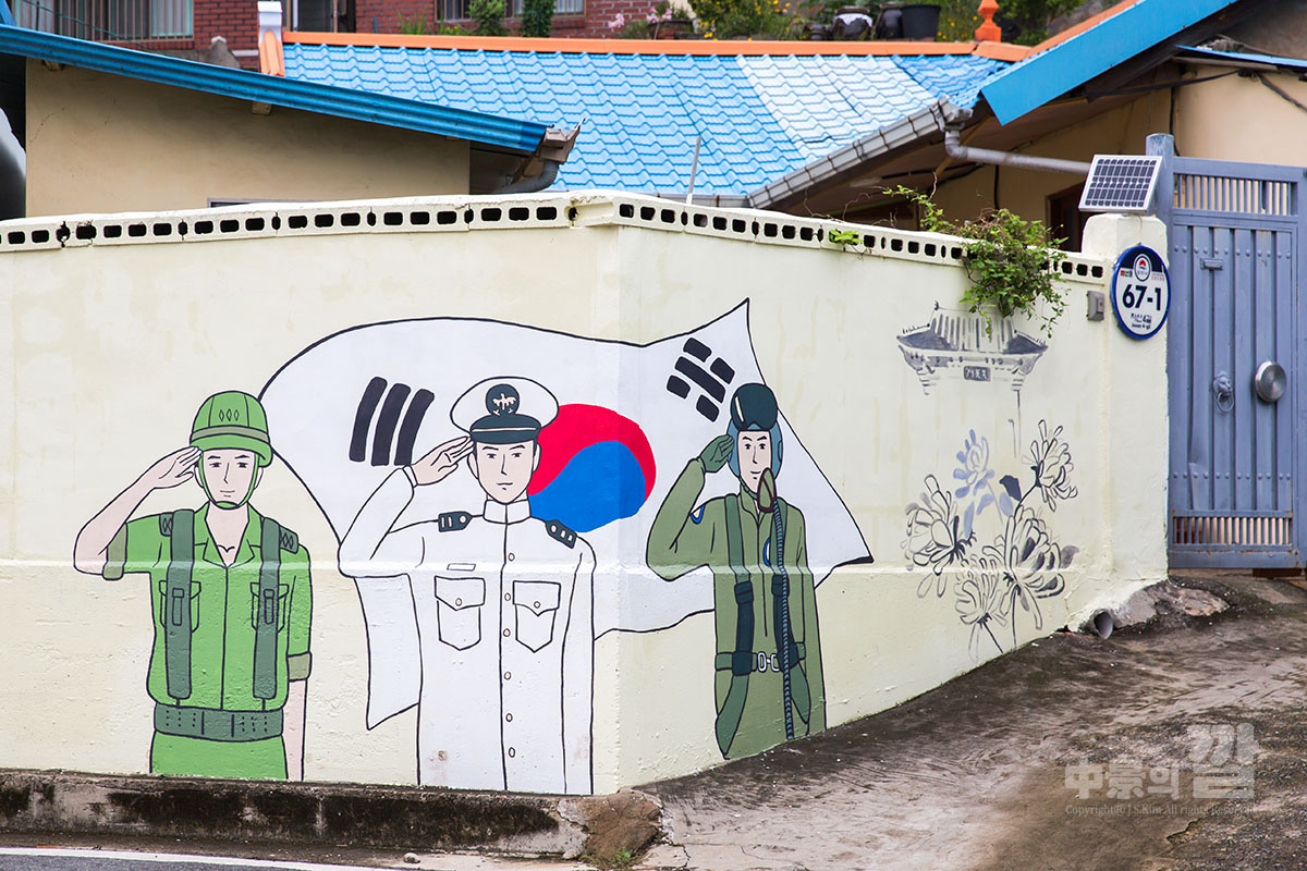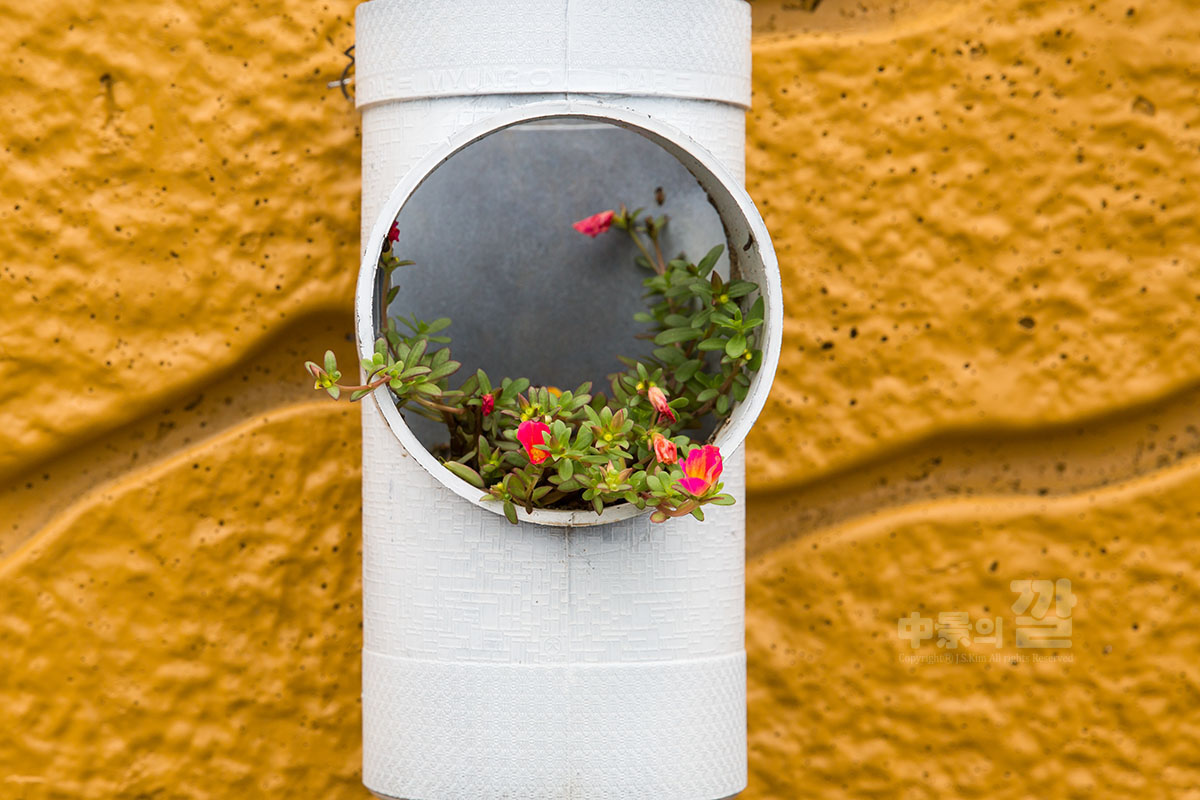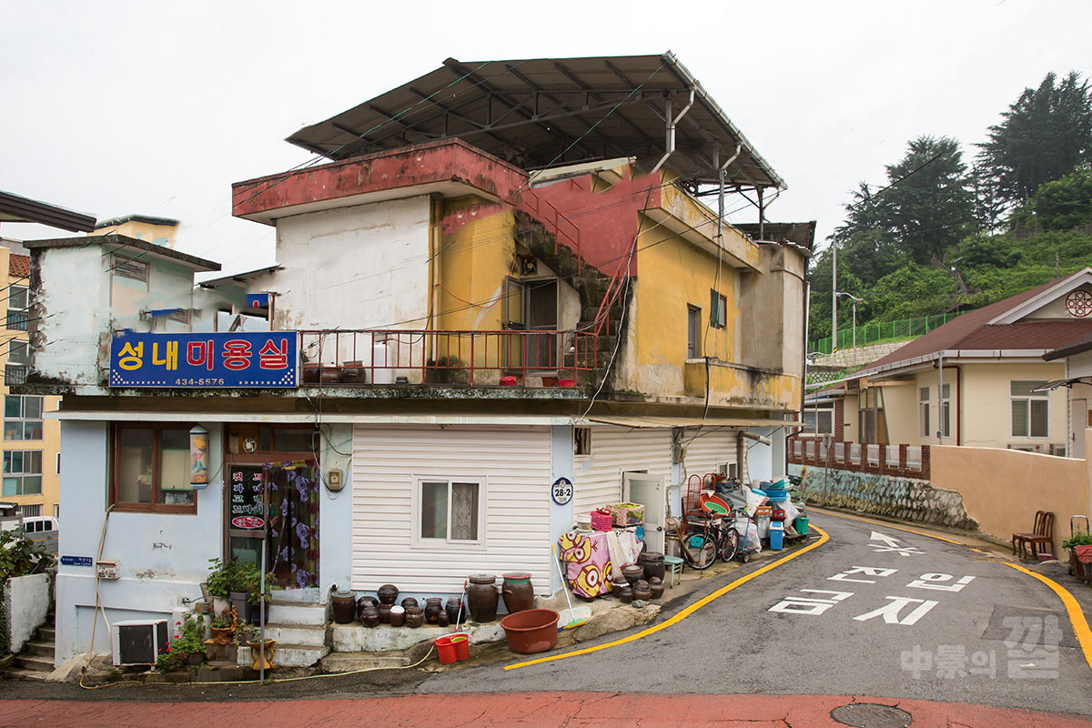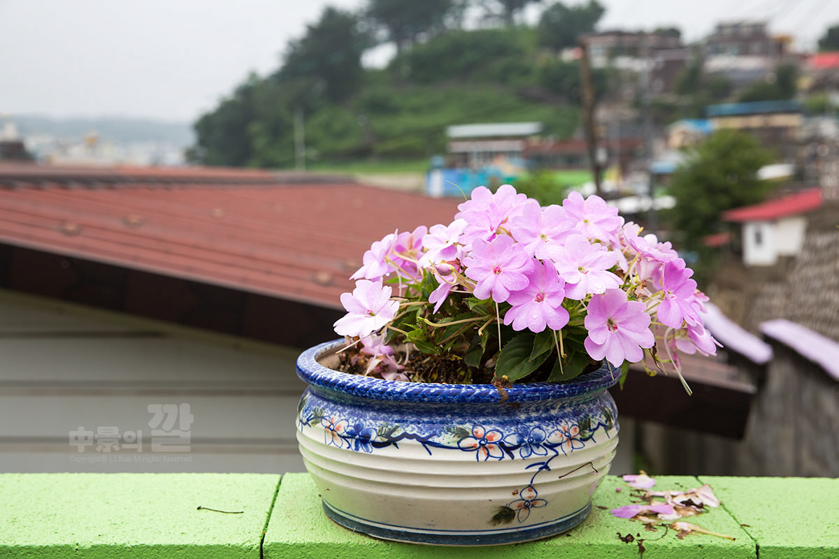 긴 장마로 인해 비가 내리는 가운데 촬영된 '자산동 벽화마을'은