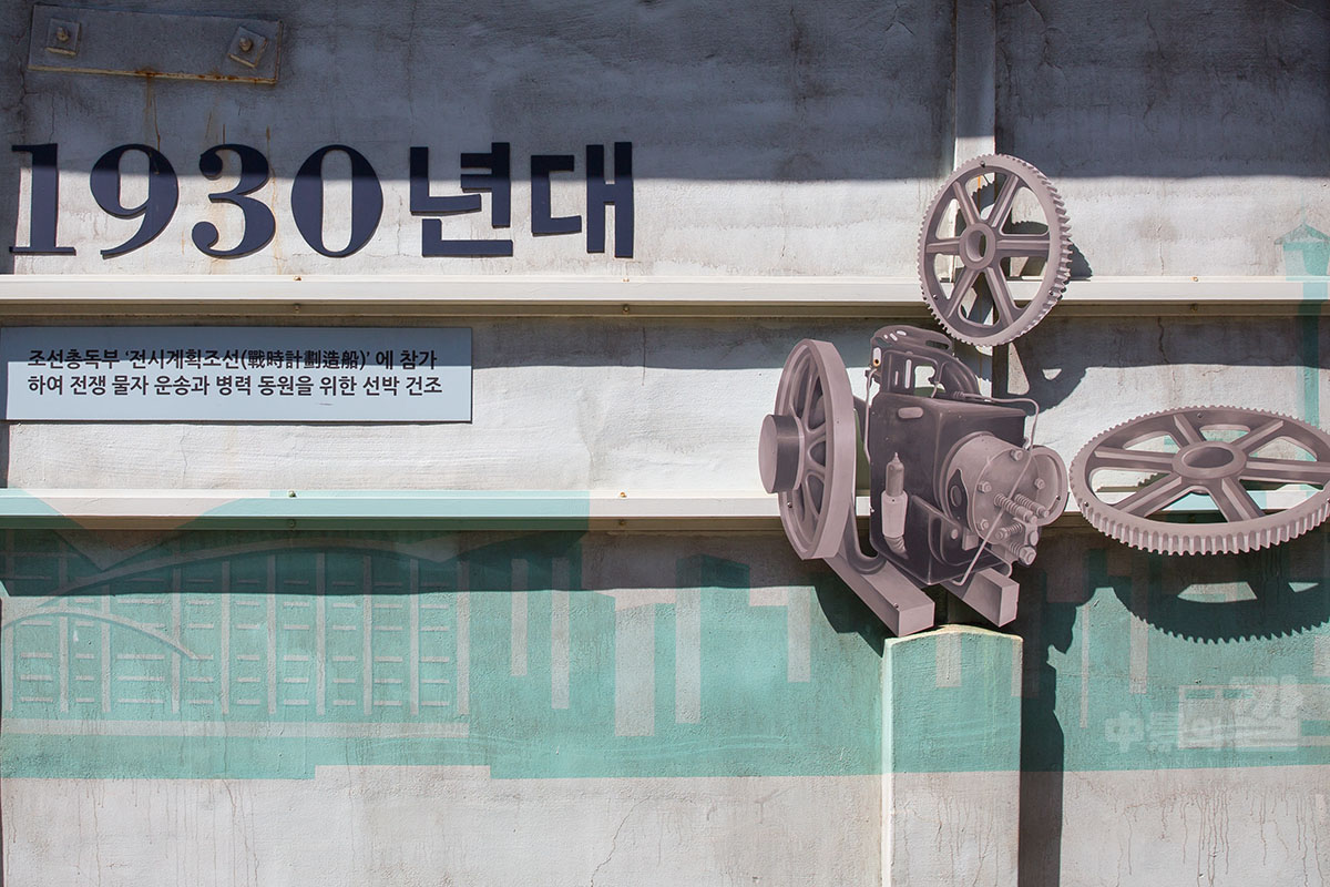 이곳은 예부터 조선소 마을로 알려져 왔습니다. 19세기 후반, 우리나라 최초로 발동기를 장착한 배를 만든 '다나카 조선소'가 세워졌던