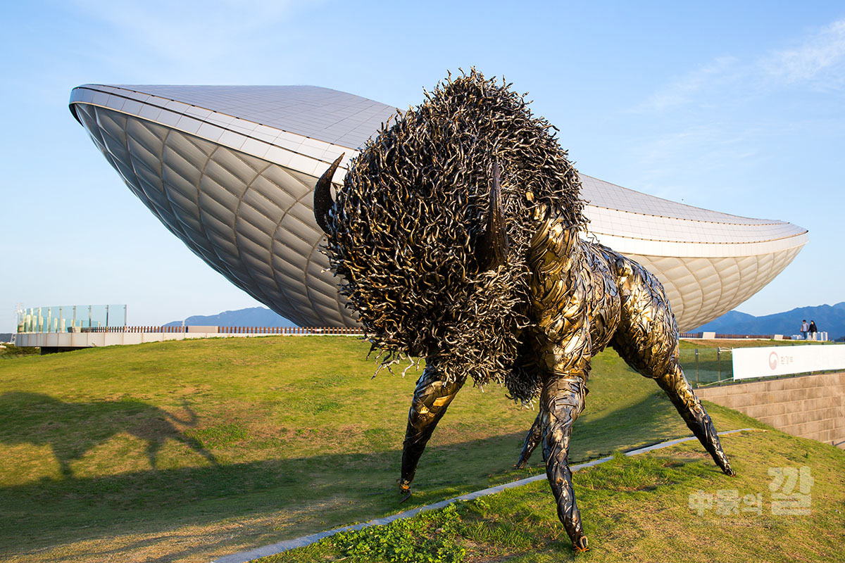 있는 홍수(노아의 방주)와 같은 자연재해들이 방지되기를 염원한다. 무지개를 만들 광각 프리즘을 조형물에 설치한다.