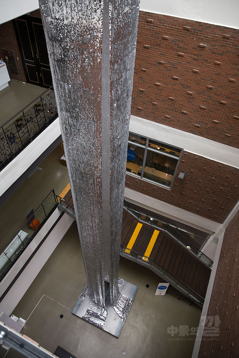 스팽글 기둥으로 제작된 기념비 형식의 설치물에는 올 한 해 동안 변화하는 대구예술발전소의 풍경이 비춰져