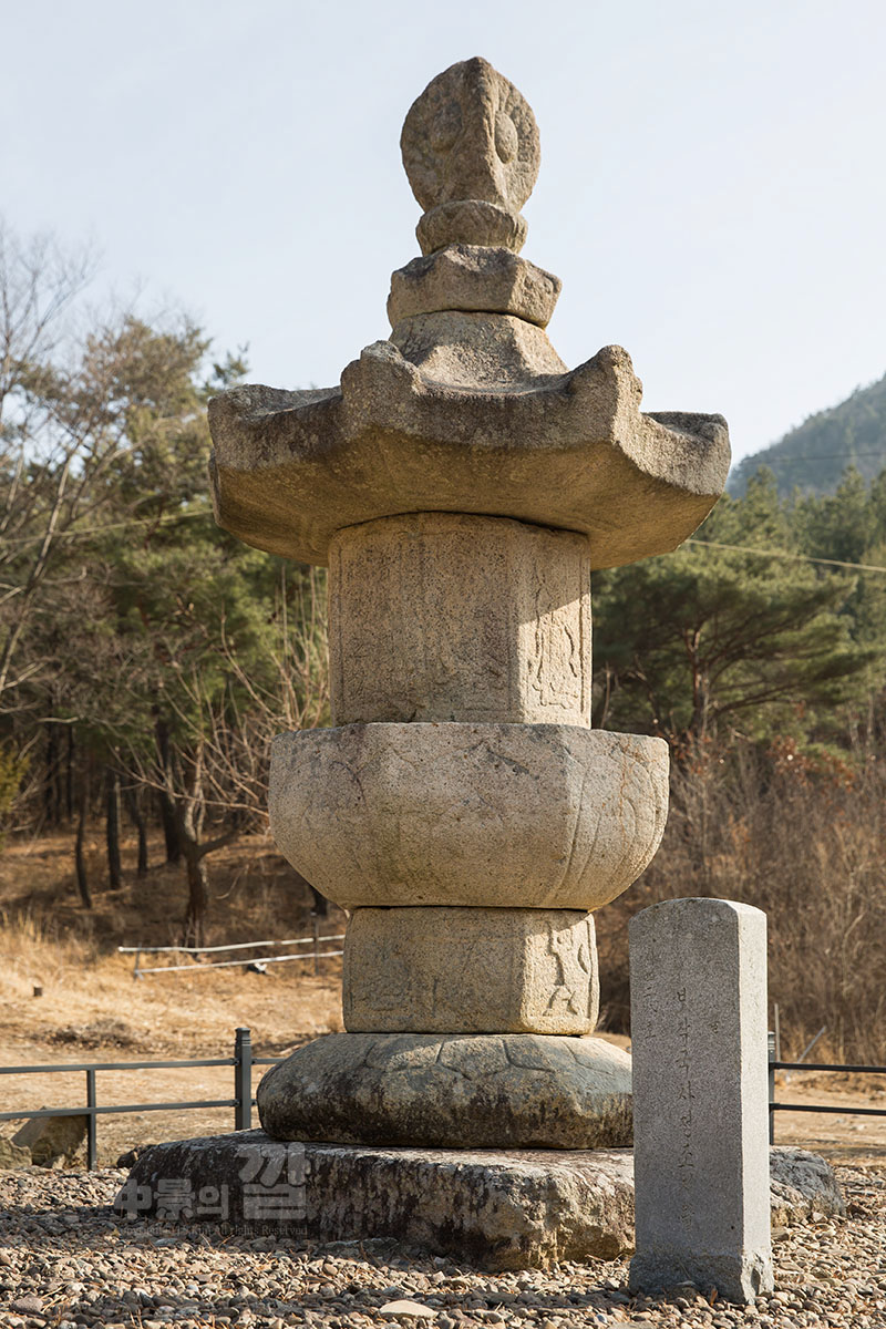 탑은 자연석으로 된 바닥 위에 놓여 있으며, 받침돌, 몸돌, 지붕돌로 구성되어 있다. 팔각 받침돌은 3단으로 되어 있는데,